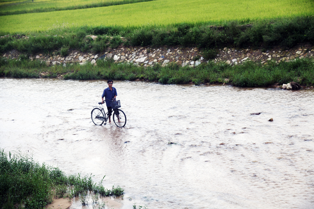 南の町である開城をバスで走る中、