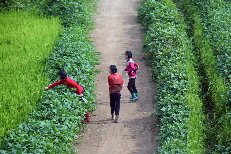 田園風景の中に広がる細い道で、